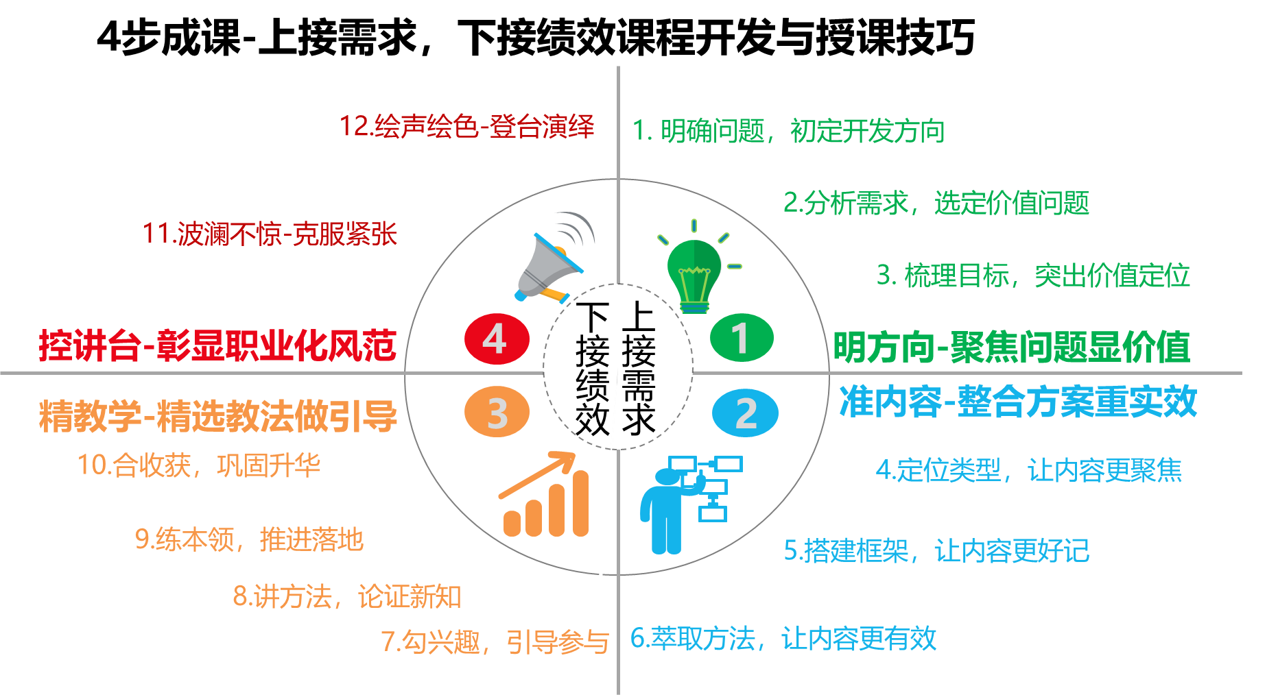 標(biāo)準(zhǔn)運用:標(biāo)準(zhǔn)語言、肢體語言、控場技巧進行授課,彰顯職業(yè)化風(fēng)范與感染力;