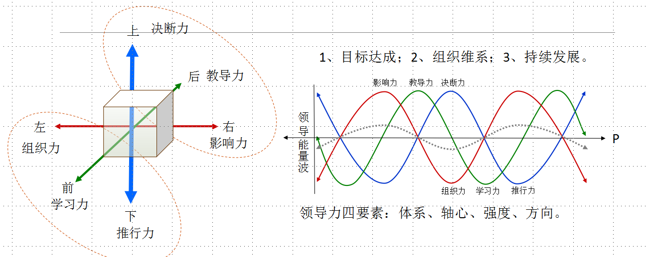 2)領(lǐng)導(dǎo)力正方體模型:前、后;左、右;上、下