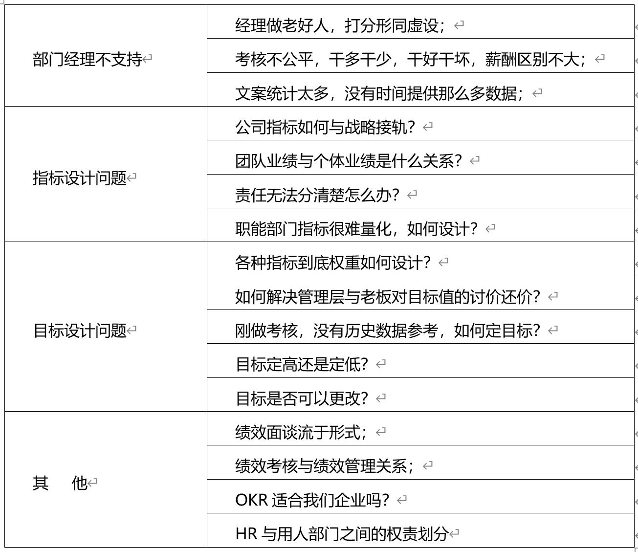 在困擾企業(yè)的諸多人力資源問(wèn)題中,績(jī)效考核、績(jī)效改進(jìn)是老板最為頭痛的問(wèn)題之一。很多企業(yè)管理者認(rèn)為績(jī)效改革勢(shì)在必行,HR也認(rèn)為績(jī)效考核必須要搞,往往不知道如何有效推進(jìn)績(jī)效管理項(xiàng)目,不知道如何有效分解目標(biāo)任務(wù),計(jì)劃與考核脫節(jié),考核與數(shù)據(jù)脫節(jié),業(yè)務(wù)部門(mén)普遍考核走過(guò)程,結(jié)果費(fèi)神費(fèi)力,沒(méi)有使員工和組織績(jī)效得到提升,因?yàn)樵诳?jī)效項(xiàng)目的推廣時(shí)往往難解決如下的問(wèn)題: